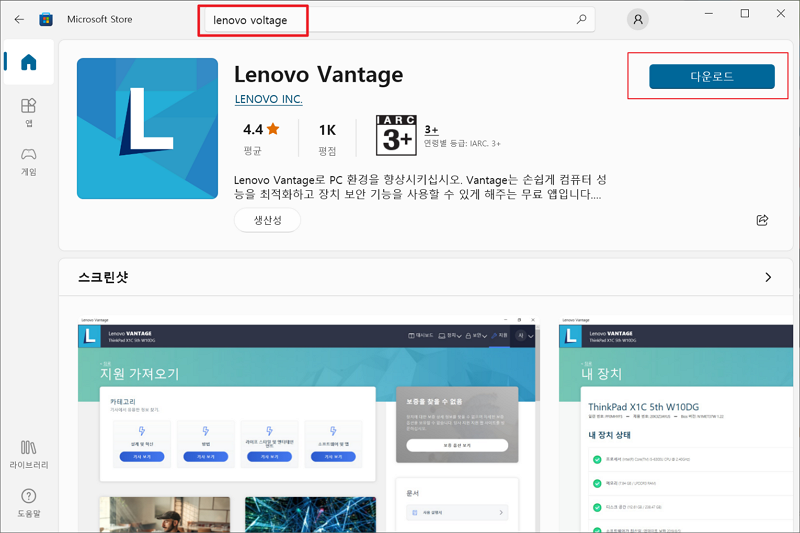 ๋ง์ดํฌ๋ก ์คํ ์ด์์ 'Lenovo Vantage' ์ฑ ์ค์น