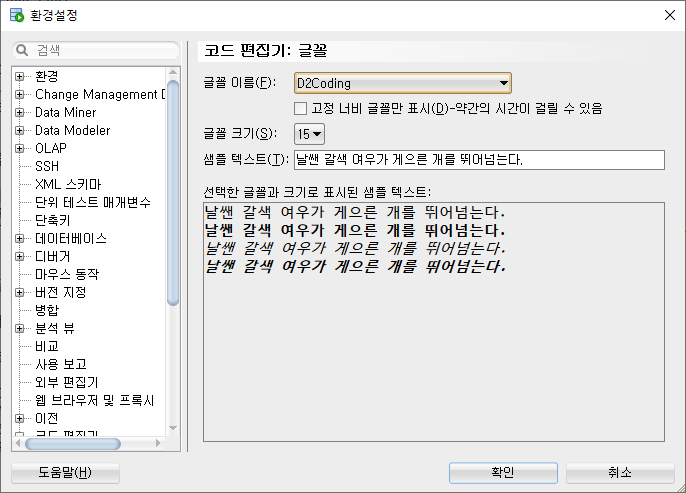 ์๋์ฐ10, D2Codingํฐํธ ์ค์น ํ SQL๋๋ฒจ๋กํผ์์ ๋ณด์ด์ง์๋ ๋ฌธ์